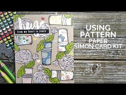 I started off with making the background by stamping the tall flower planter multiple times on a piece of kraft cardstock. Then I stamped the same image on 6 different pattern paper from the Bobunny Early Bird collection that came with the Simon card kit. I fussy cut all 6 of the planters out.